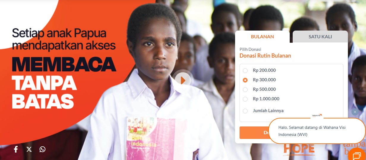 - Donasi online langsung melalui platform resmi Wahana Visi Indonesia.